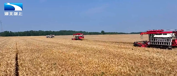 在宜昌当阳市一处万亩大麦种植田内,四台收割机、运粮拖拉机正开足马力,在田间地头穿梭,种植户正抢抓晴好天气收割,为确保大麦应收尽收、颗粒归仓。
